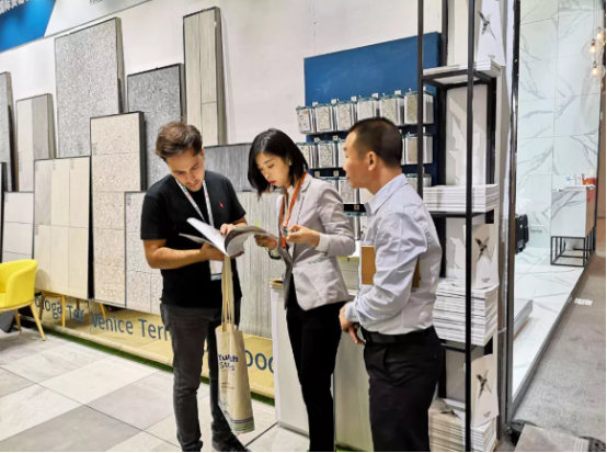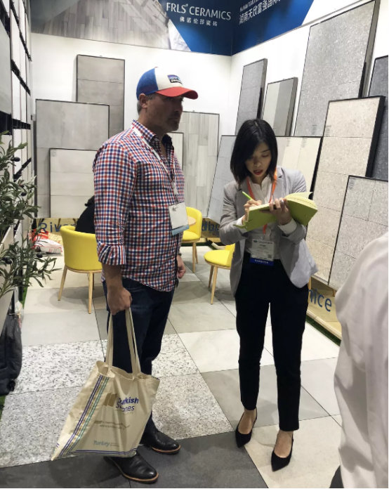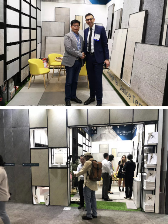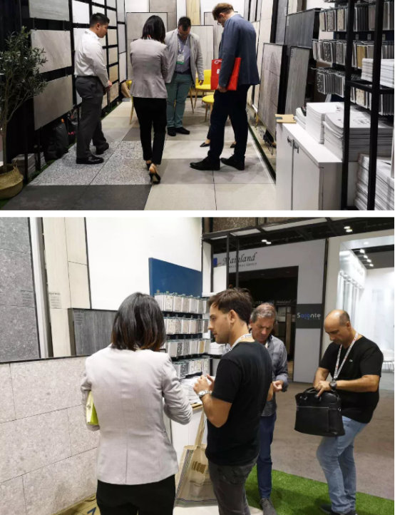 來(lái)自全球各地的客商,紛紛來(lái)到天欣科技×佛諾倫莎的展館參觀(guān)與洽談貿易合作,對于天欣科技在仿古磚的質(zhì)感和花色上,以及對于代表目前國內高水平的2cm厚磚,客戶(hù)給予了充分的肯定,我們也再一次向世界展現了“CHINA”的力量。