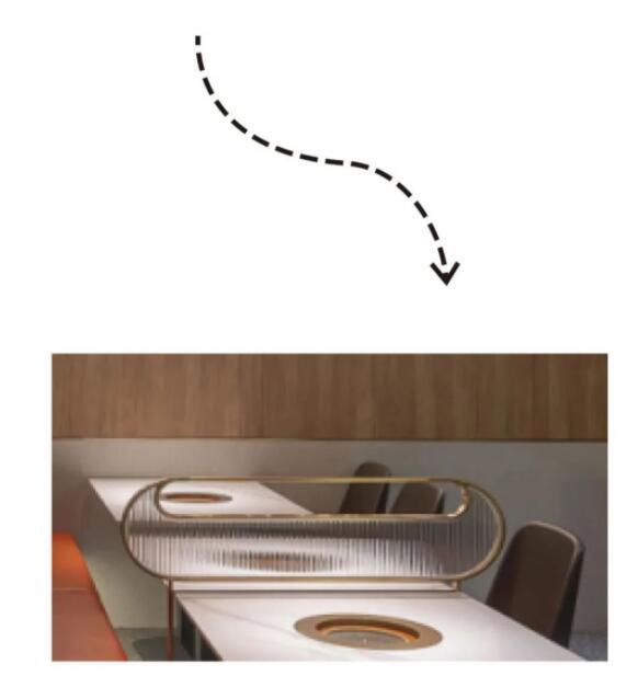 本案室內設計以牛角元素為核心,大大小小的牛角符號,在空間布局里有計劃有策略地陳列,一步步深化品牌印象。門(mén)頭是空間視覺(jué)的第一記憶點(diǎn),大牛角符號形象生動(dòng),也能令人產(chǎn)生“大牛角=牛小灶”的自然聯(lián)想,進(jìn)而讓牛小灶品牌文化在人們印象中巧妙嫁接,強化視覺(jué)錘的表現力。
